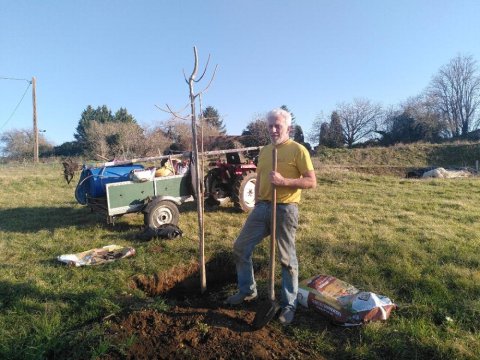 Plantation de grands arbres dans le Jardin de Lyno - Belvès