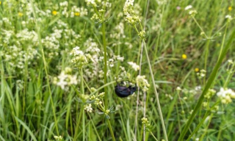 Orchidée sauvage, marguerite, carotte sauvage, sauge, trèfle des prés, bouton d'or... ainsi que quelques arbres déjà présents sur le terrain quand nous nous y sommes installés ou que nous avons plantés depuis : noyer, cerisier, poirier, robinier, églantier (dont le fruit, le cynorhodon ou gratte-cul... donne une excellente confiture)...